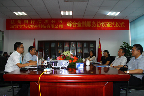 9月10日,中國建設銀行深圳分行行長劉軍、公司部總經理林俐、投行部總經理王磊等一行到訪華訊方舟,了解公司的經營狀況,就進一步加強銀企合作,深化金融服務進行交流探討。公司副